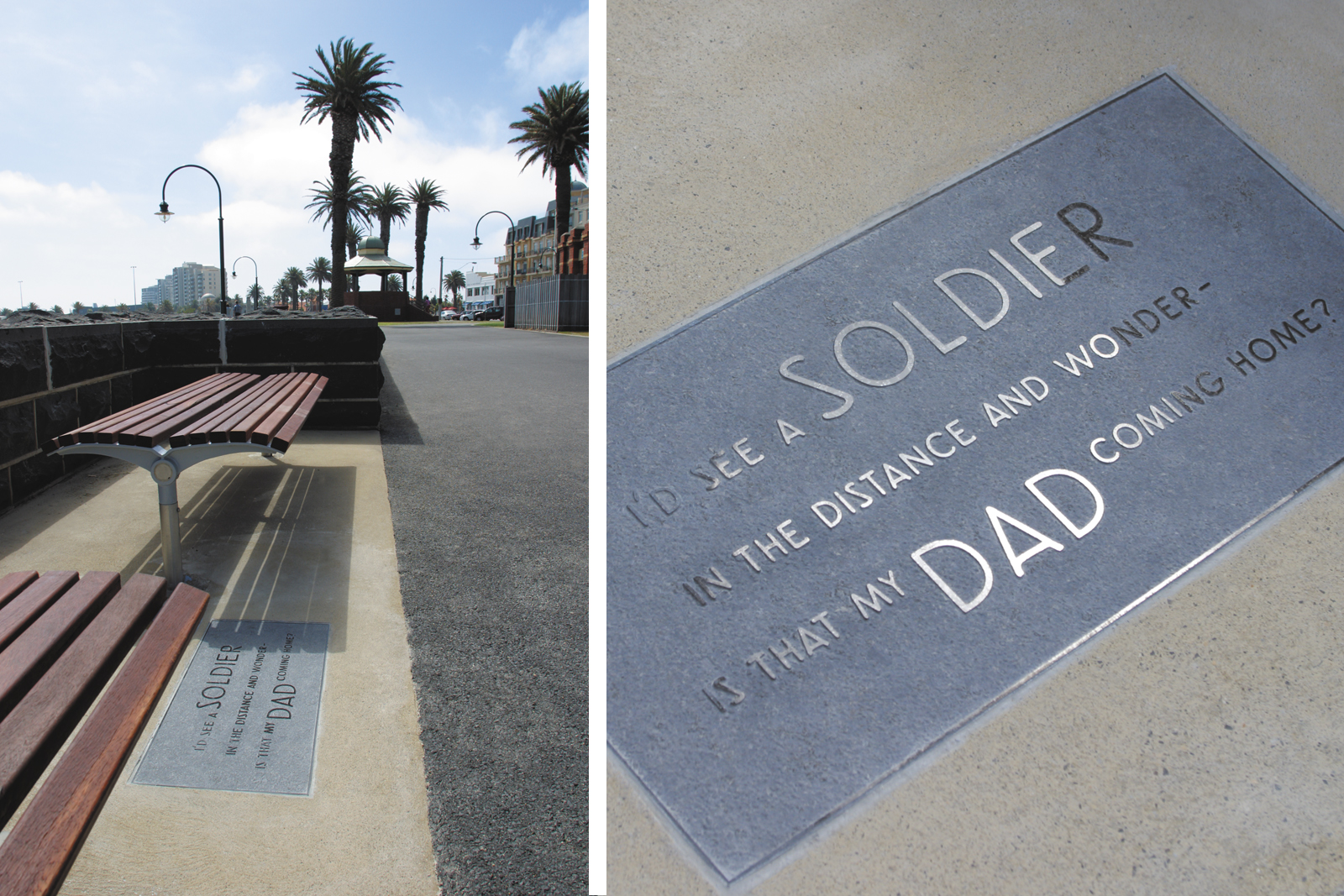 ‘The artwork has more than fulfilled our project objectives of creating a subtle and beautiful work that illuminates the deep connection that long-term Port Melbourne residents feel about the area and its history as a point of arrivals and departures during the war’. City of Port Phillip